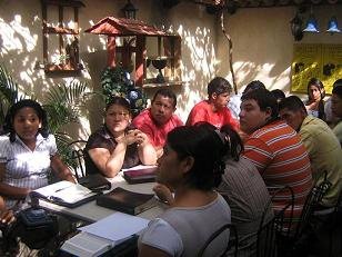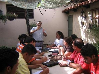 Grupo de Voluntarios recibiendo capacitación sobre como hacer estudios biblicos efectivos, impartido por el Hno. Tomas Eliseo Martínez